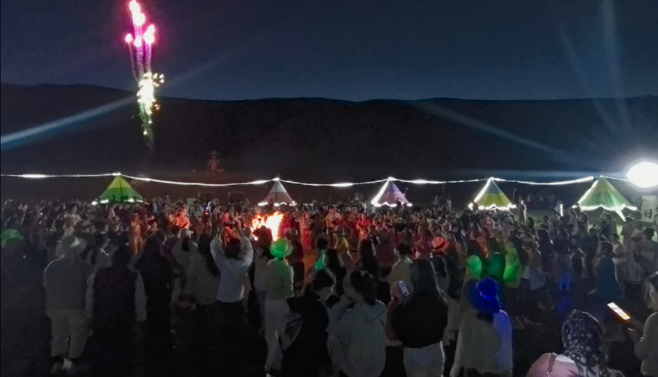 本次活动由雍景安传媒有限责任公司承办,曲目涵盖经典花儿演唱、流行金曲及原创舞蹈作品,旋律轻松愉悦,情感真挚动人,伴随着轻松欢快的旋律,到处呈现出一片欢乐、祥和的氛围,随之音乐会进入了高潮部分,成为全场焦点,围绕篝火派对的到来,游客们纷纷加入了锅庄表演,气氛热烈欢腾,现场提供懒人沙发、月亮椅及营地道具等。 活动最后,上演了星空烟火秀。本次活动累计免费发放竹子沟景区门票120余张、富康文旅手提袋50余个,荧光棒150个,康康乐乐毛绒公仔10个、缐家楼精品文创礼盒(茶具套盒、笔记本套盒、笔筒)各两套。