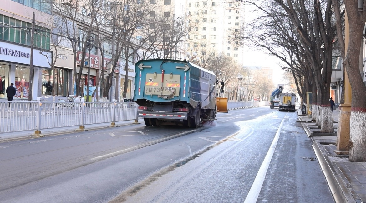 康乐县城市管理综合行政执法队职工王建平说:“冬季气候干燥,道路扬尘是影响空气质量的重要因素”。我们清洗车辆全部出动,常态化开展洗路作业,全力降低扬尘污染,为群众营造良好的出行环境和生态环境" 。