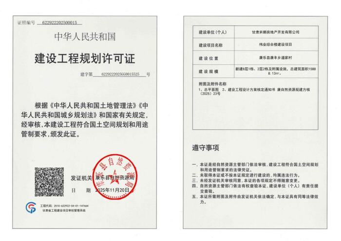 甘肃米娜房地产开发有限公司向我单位申请办理伟业综合楼建设项目建设工程规划许可证,我单位按程序对申报材料进行了审核并做出予以办理的决定,现依据《中华人民共和国行政许可法》《中华人民共和国城乡规划法》《自然资源领域基层政务公开标准指引》等相关法律规定,对许可证证载内容进行公布: