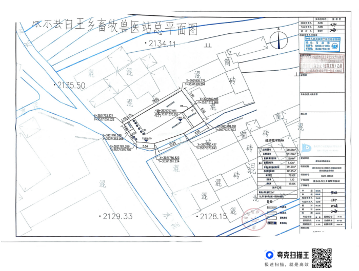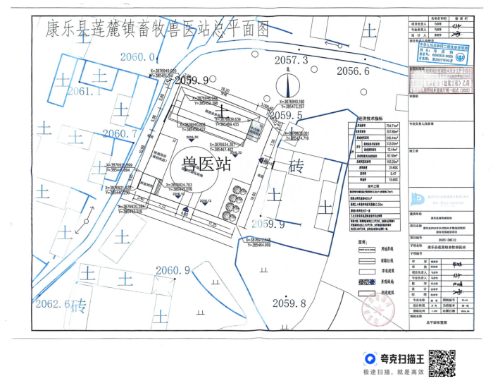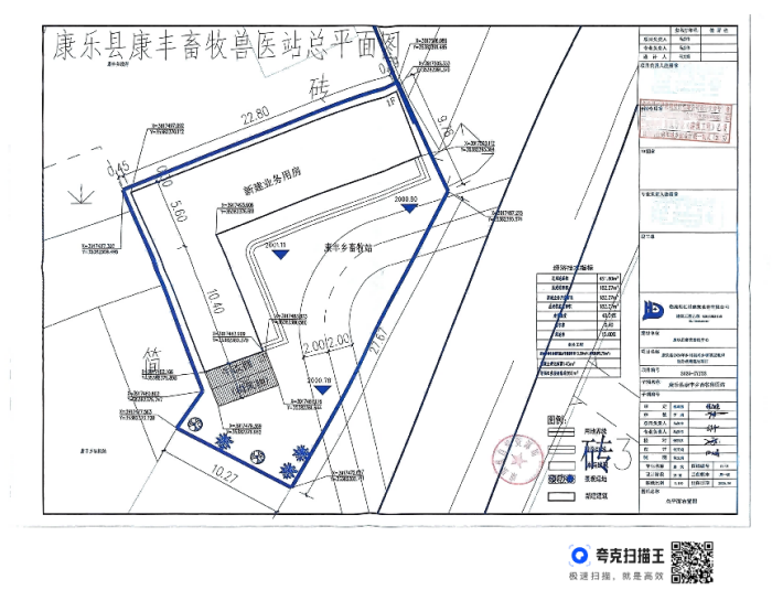 6.建设规模:新建业务楼932㎡,新建一层业务用房及附属用房372.82㎡,厕所55.05㎡,配套修建围墙、大门、牛改棚等附属设施。