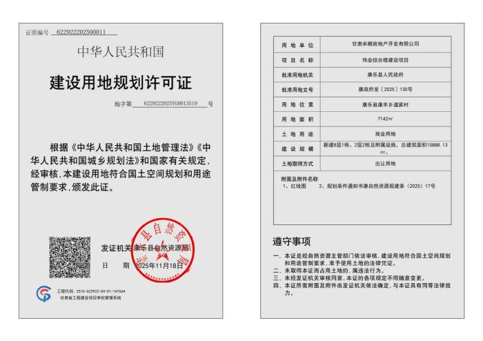 甘肃米娜房地产开发有限公司向我单位申请办理伟业综合楼建设项目建设用地规划许可证,我单位按程序对申报材料进行了审核并做出予以办理的决定,现依据《中华人民共和国行政许可法》《中华人民共和国城乡规划法》《自然资源领域基层政务公开标准指引》等相关法律规定,对许可证证载内容进行公布: