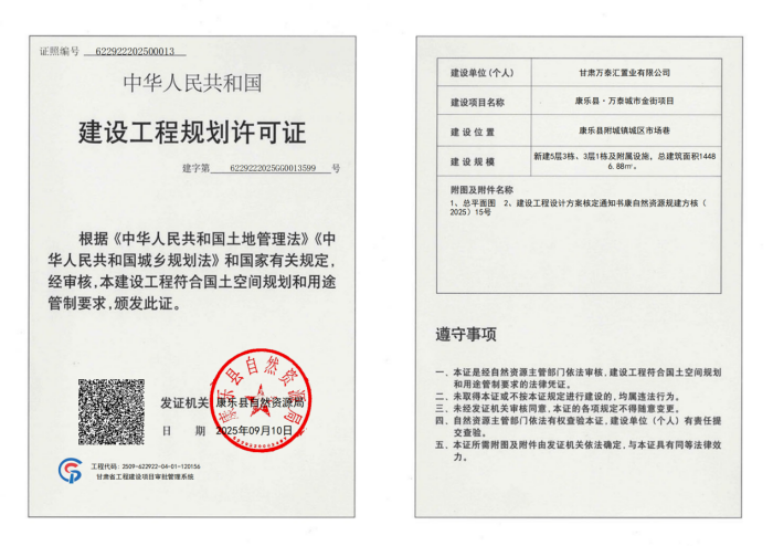 康乐县万泰城市金街项目建设工程规划许可证批后公布