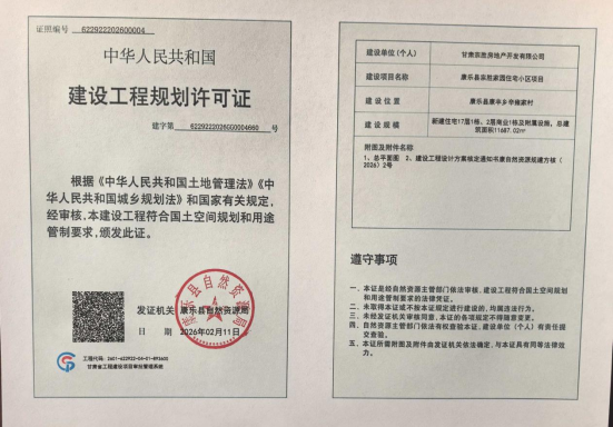 康乐县宗胜家园住宅小区项目规划许可证批后公布