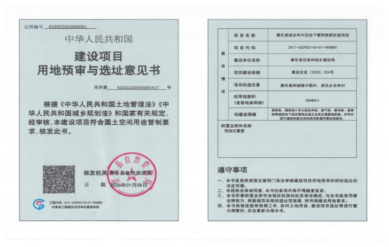 康乐县城关丰片区地下管网更新改造项目用地预审与选址意见书批后公布