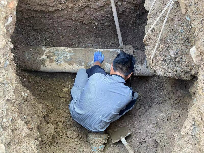 康乐县城乡供排水服务中心东桥滑雪场人行道315mm供水管道破裂维修