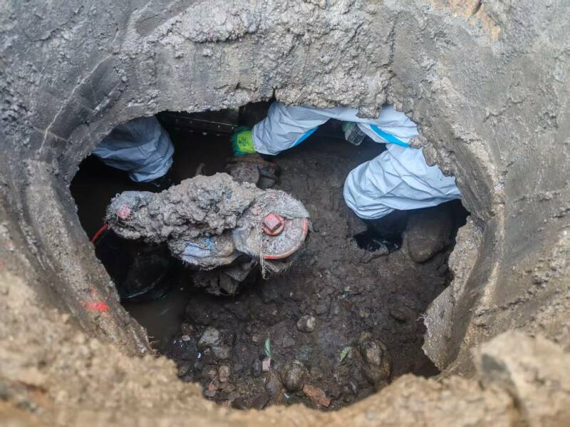 12月16日,途径国盛家园门口的PE160供水主管道破裂维修。