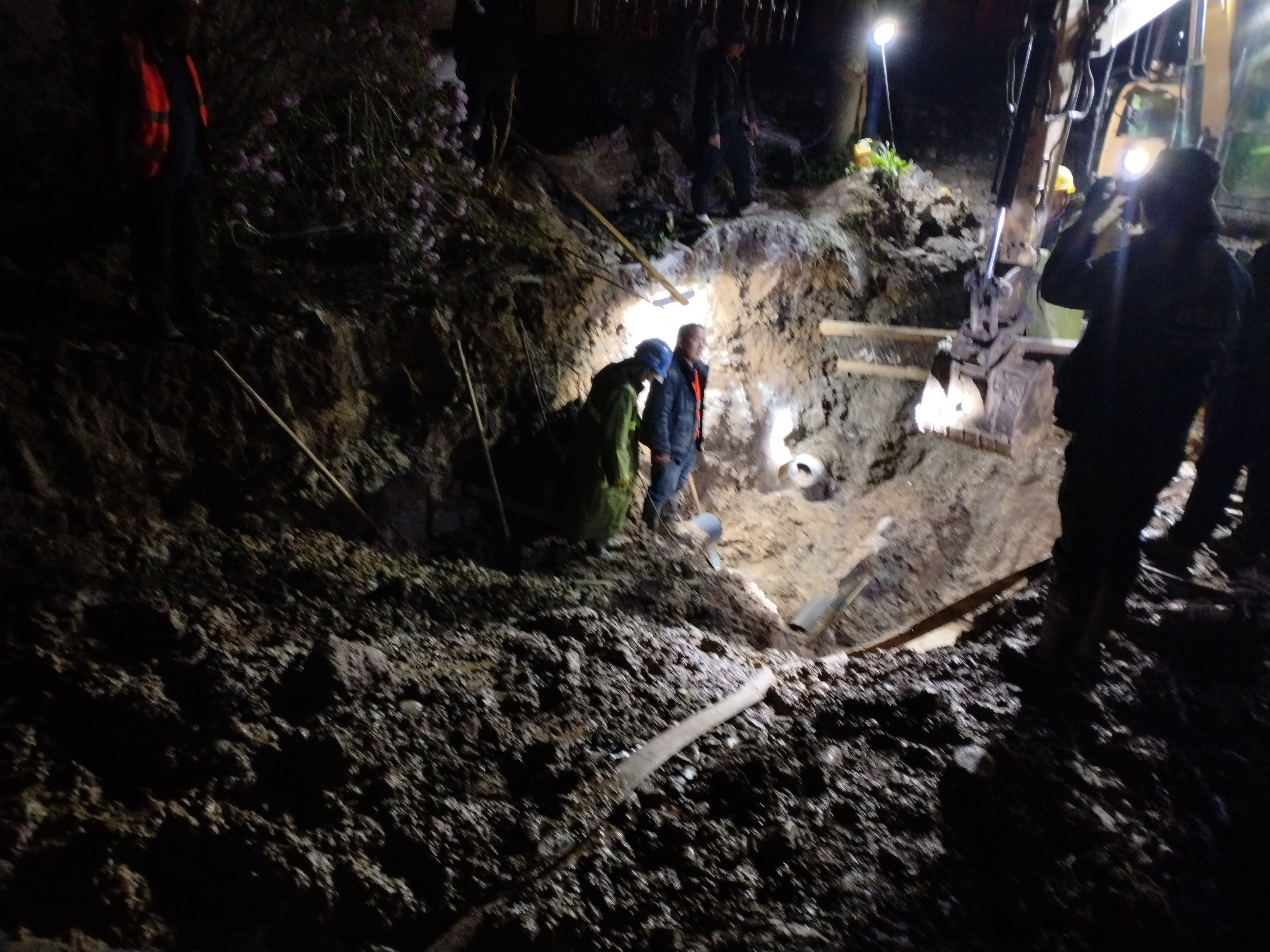 4月28日,宏源汽修厂门口PVC250主管道维修。