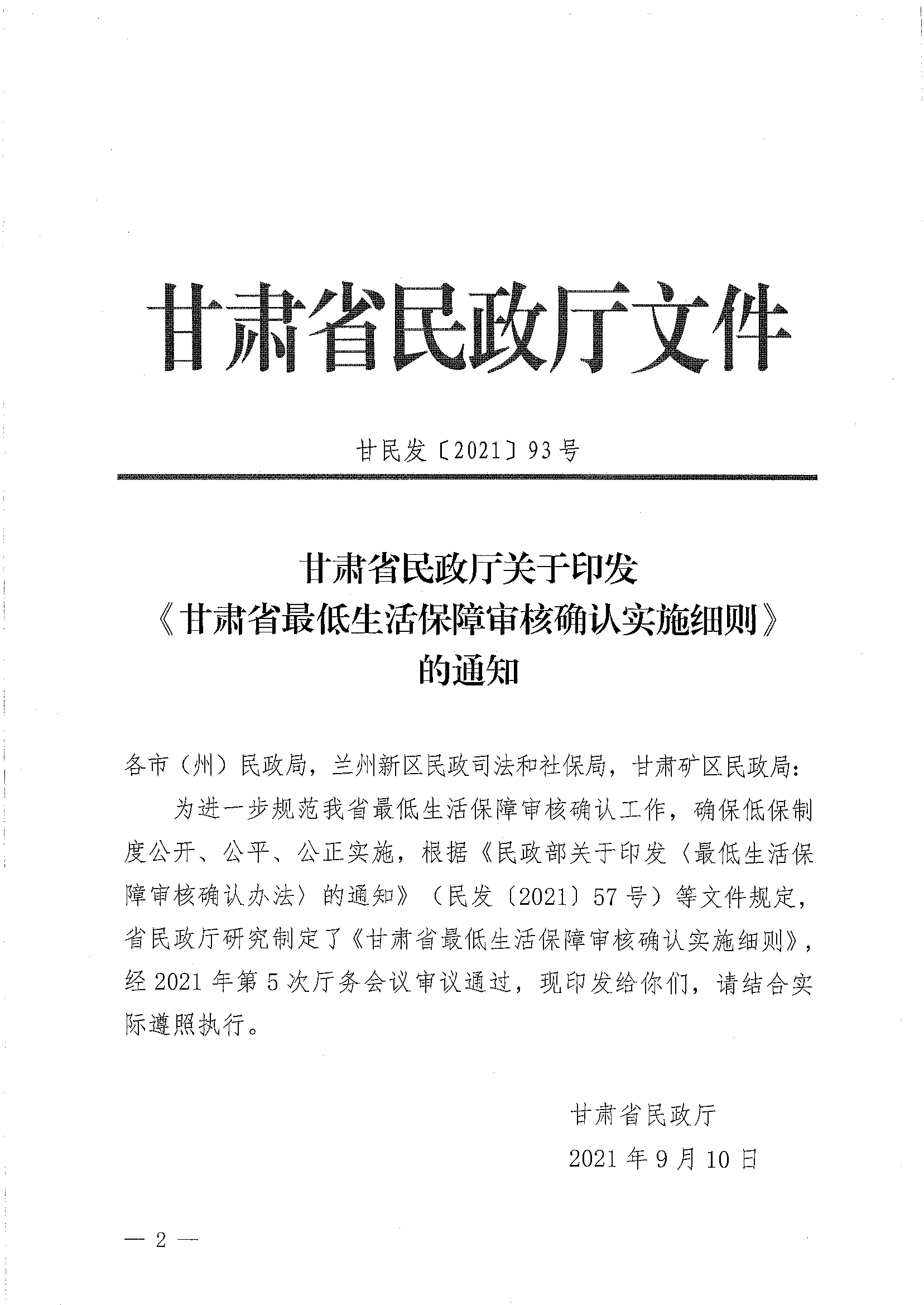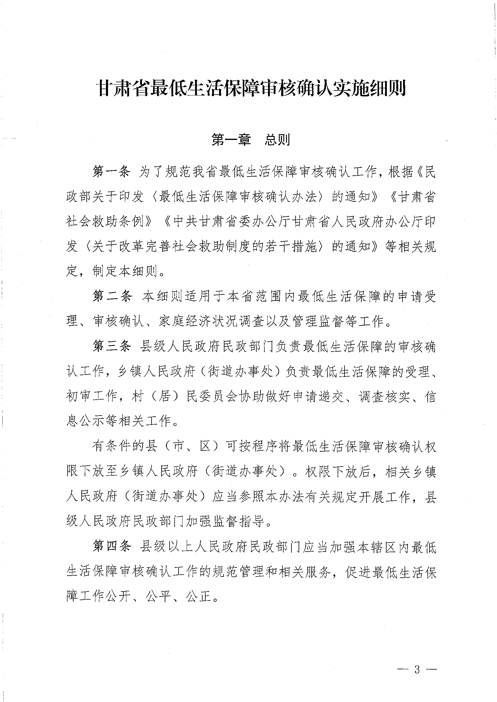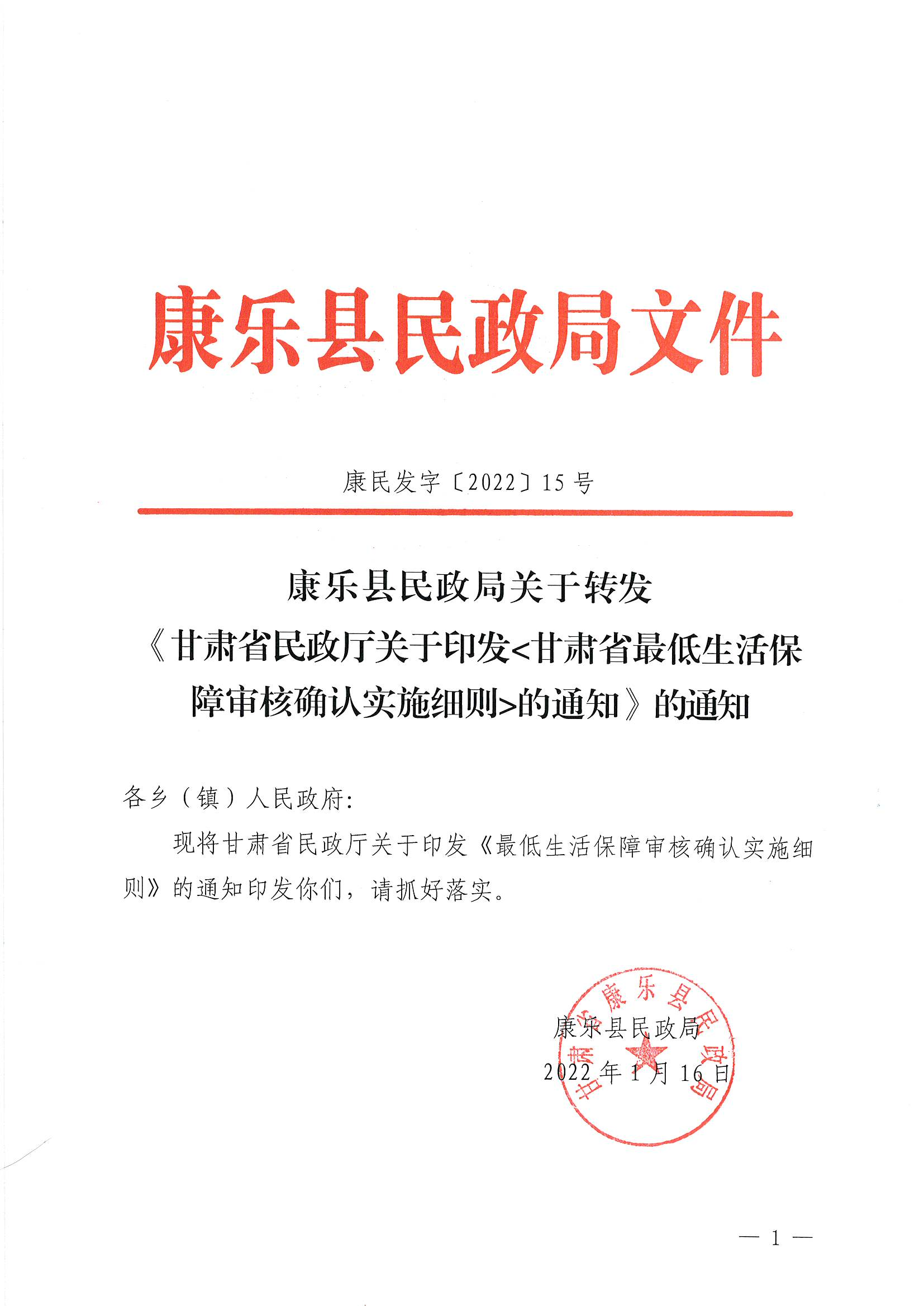 康乐县民政局关于转发《甘肃省最低生活保障审核确认实施细则》的通知(康民发15号)