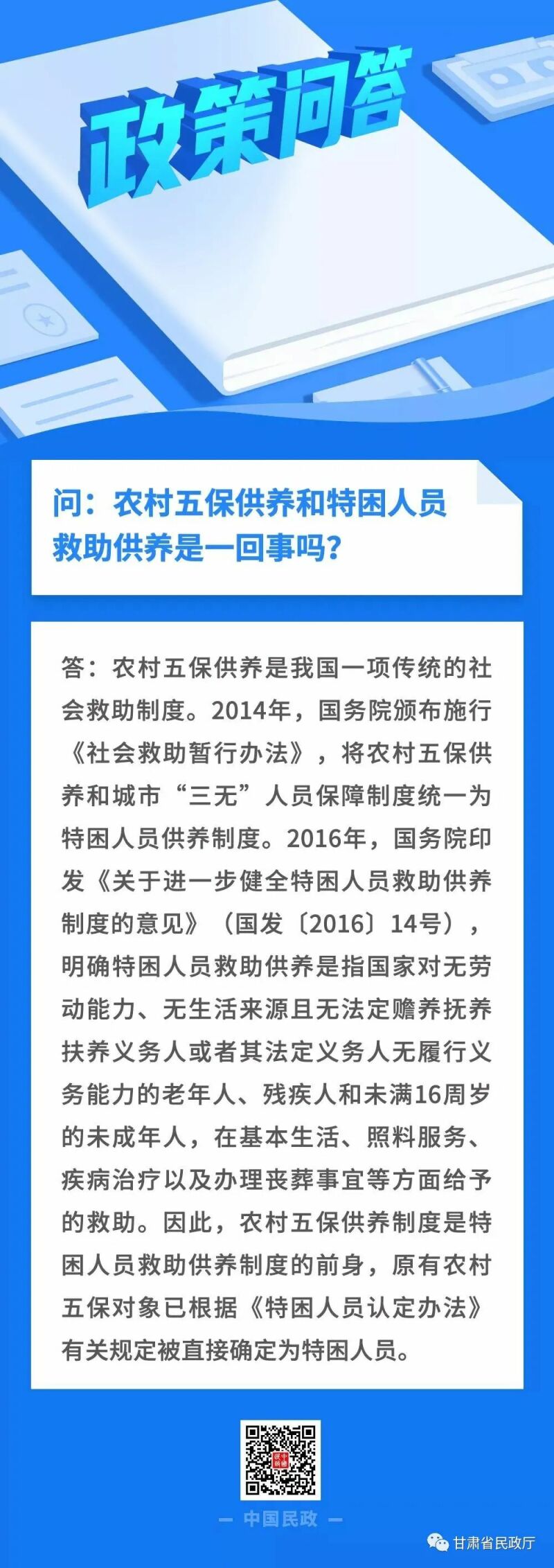政策问答:农村五保供养和特困人员救助供养是一回事吗?