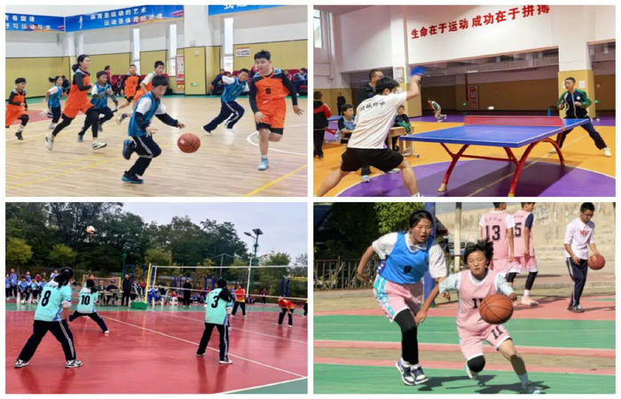 各个赛场竞争激烈,小学组男女混合篮球的巧妙配合、中学组篮球排球的力量与技巧、乒乓球的敏捷对决,无不精彩纷呈。