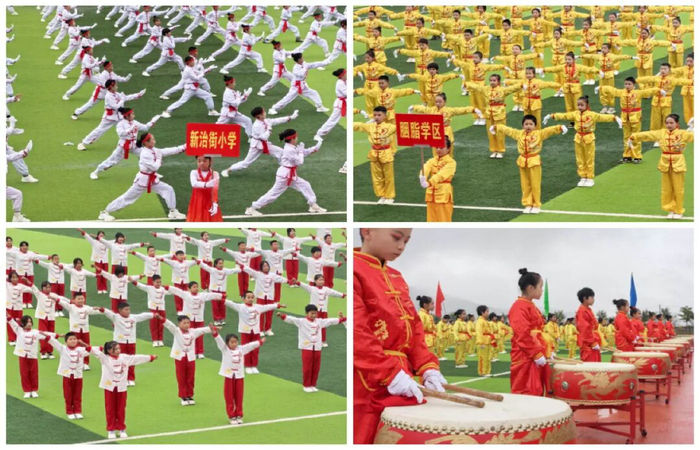 “千字文”武术操赛场气势恢宏,各参赛队伍动作整齐划一,招式刚柔并济,将中华经典文化的深厚底蕴与武术操的阳刚之美完美融合,成为赛场上一道亮丽的风景线。