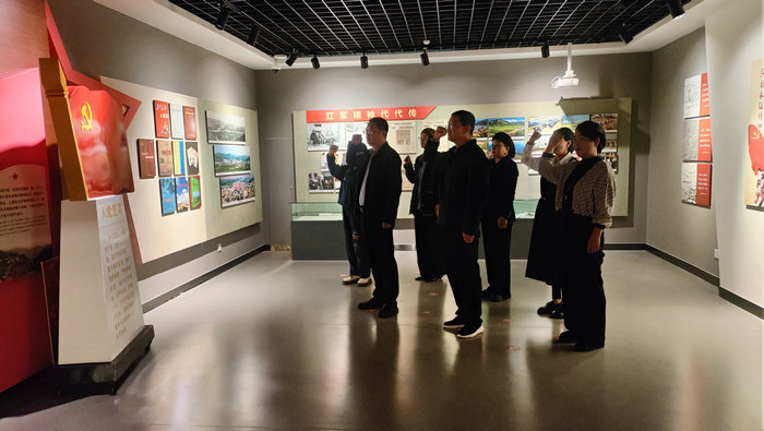 活动中,全体人员在讲解员引导下,通过观看历史文物、图文史料等,系统了解了当地红色政权的建立历程、革命先辈的奋斗故事,重温了那段硝烟弥漫的峥嵘岁月。在纪念馆宣誓区,全体党员面对党旗庄严宣誓,重温入党誓词,进一步坚定了理想信念和初心使命。