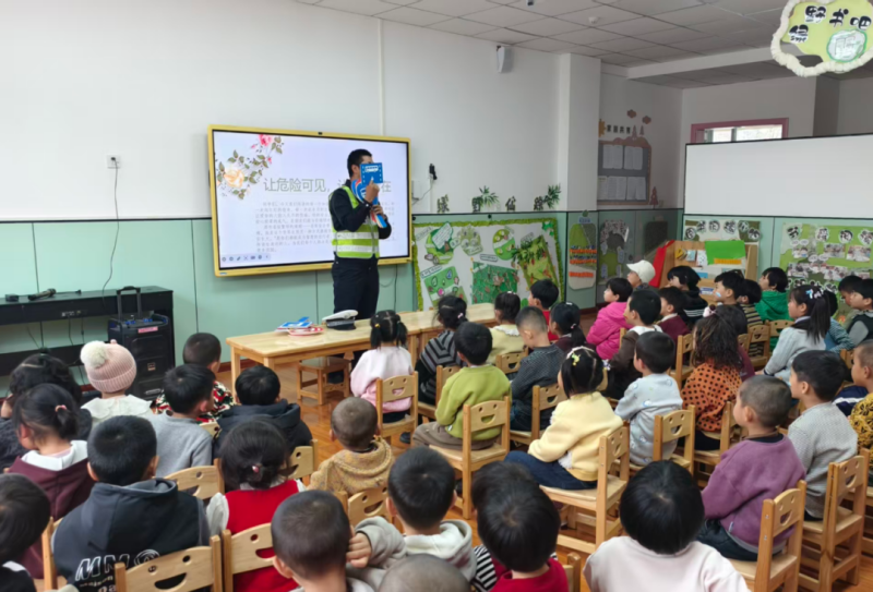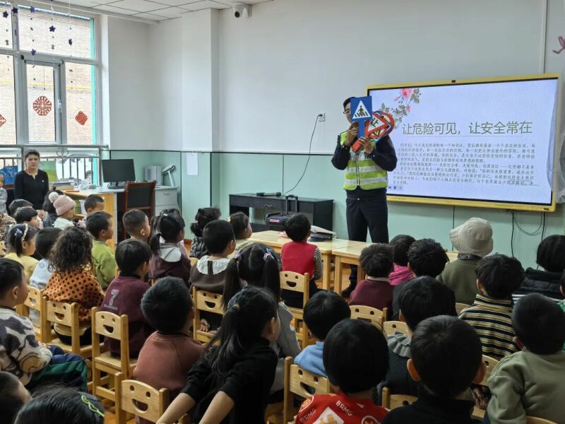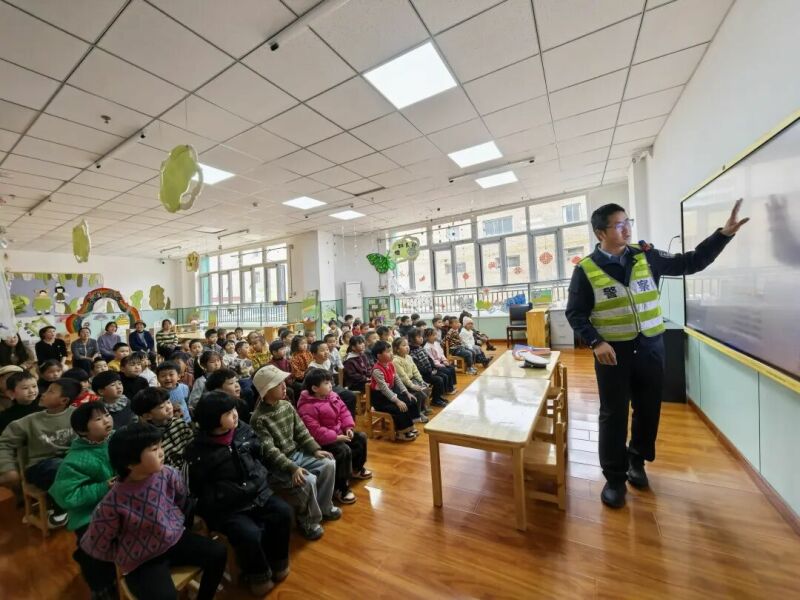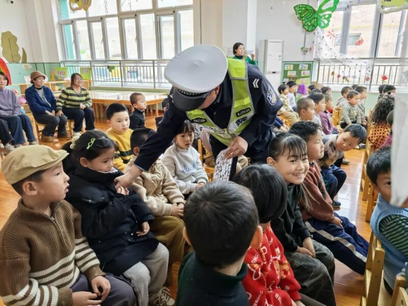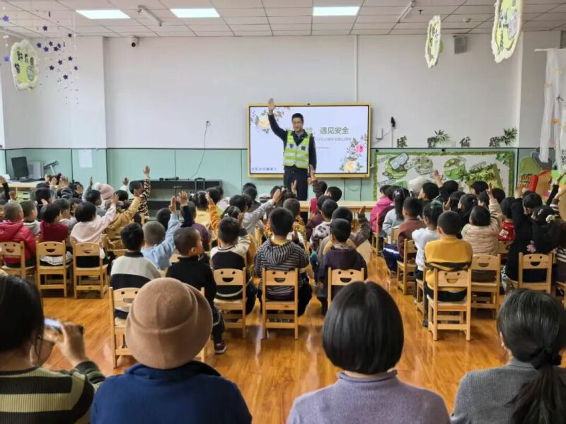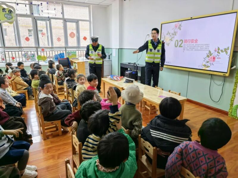此外,考虑到幼儿的出行特点,民警重点讲解了如何安全乘坐私家车和非机动车。提醒小朋友们在乘坐爸爸妈妈的电动车时,一定要戴好安全头盔;坐在汽车后排,也要乖乖坐好,使用儿童安全座椅。民警通过简单易懂的顺口溜,引导孩子们思考日常出行中可能遇到的危险,并教会他们如何避免。