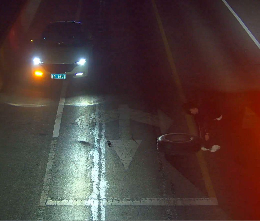 经视频巡检,发现遗失轮胎位于五户乡下窑村路段