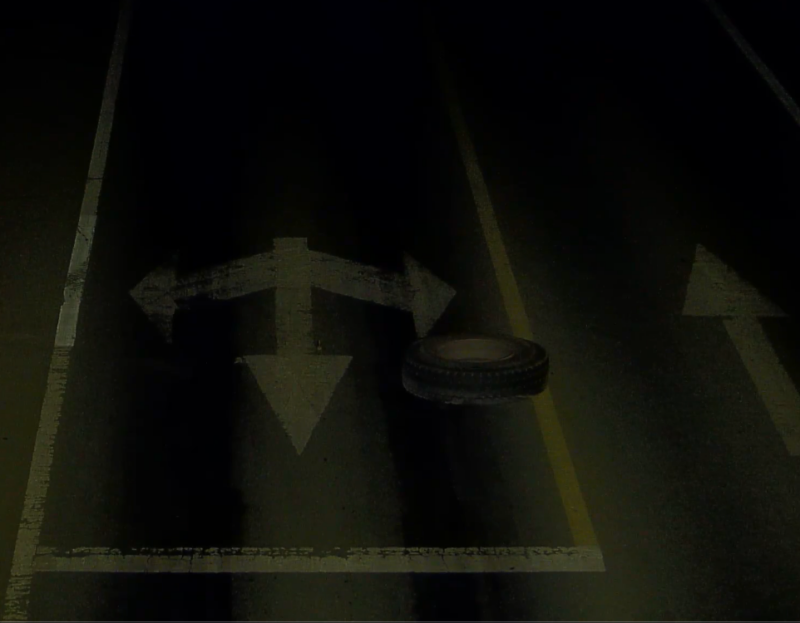 一条货车备胎平放于车道中央