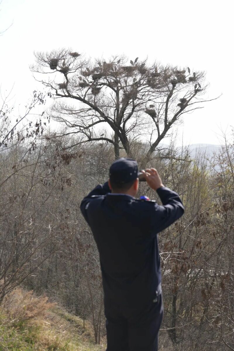 如今,苍鹭已成为晏家村的名片,也是康乐生态的“晴雨表”。每年三月,它们如约归来;每年初冬,总有几只留守故地,等待来年春天的再次相见。而康乐公安的守护,正如那古树枝头的巢穴一样——日复一日,年复一年,稳稳托起苍鹭的归巢之梦,让“警察蓝”与“生态绿”在陇原大地上交相辉映。