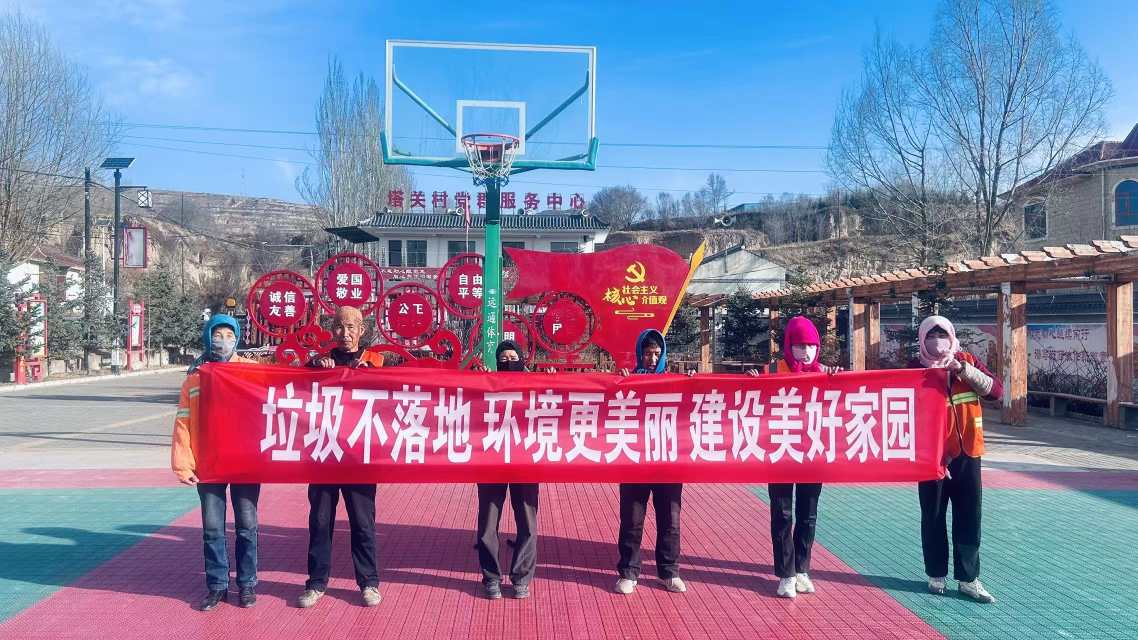 2026年3月,我单位相关股室工作人员走进康乐县苏集镇,以“垃圾不落地、环境更美丽、建设美好家园”为主题,环卫工作人员作为环境守护的一线参与者,通过举横幅的形式,开展的公共卫生倡议行动,旨在提升居民的卫生意识、推动乡镇文明风貌建设。体现了卫生宣传与文明建设的主题。