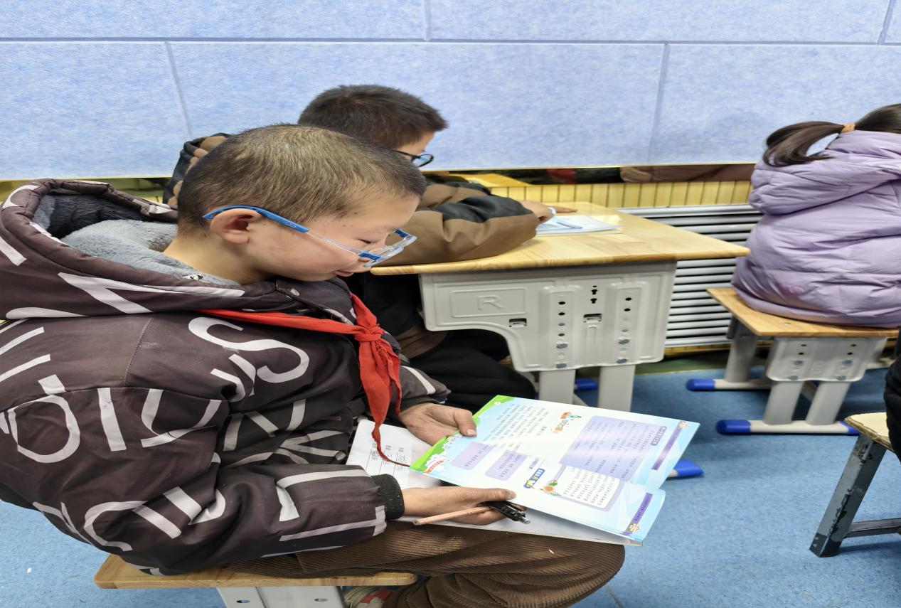 司法所工作人员为学生发放宪法、民法典等相关法律法规宣传手册读本,并指导学生阅读学习。