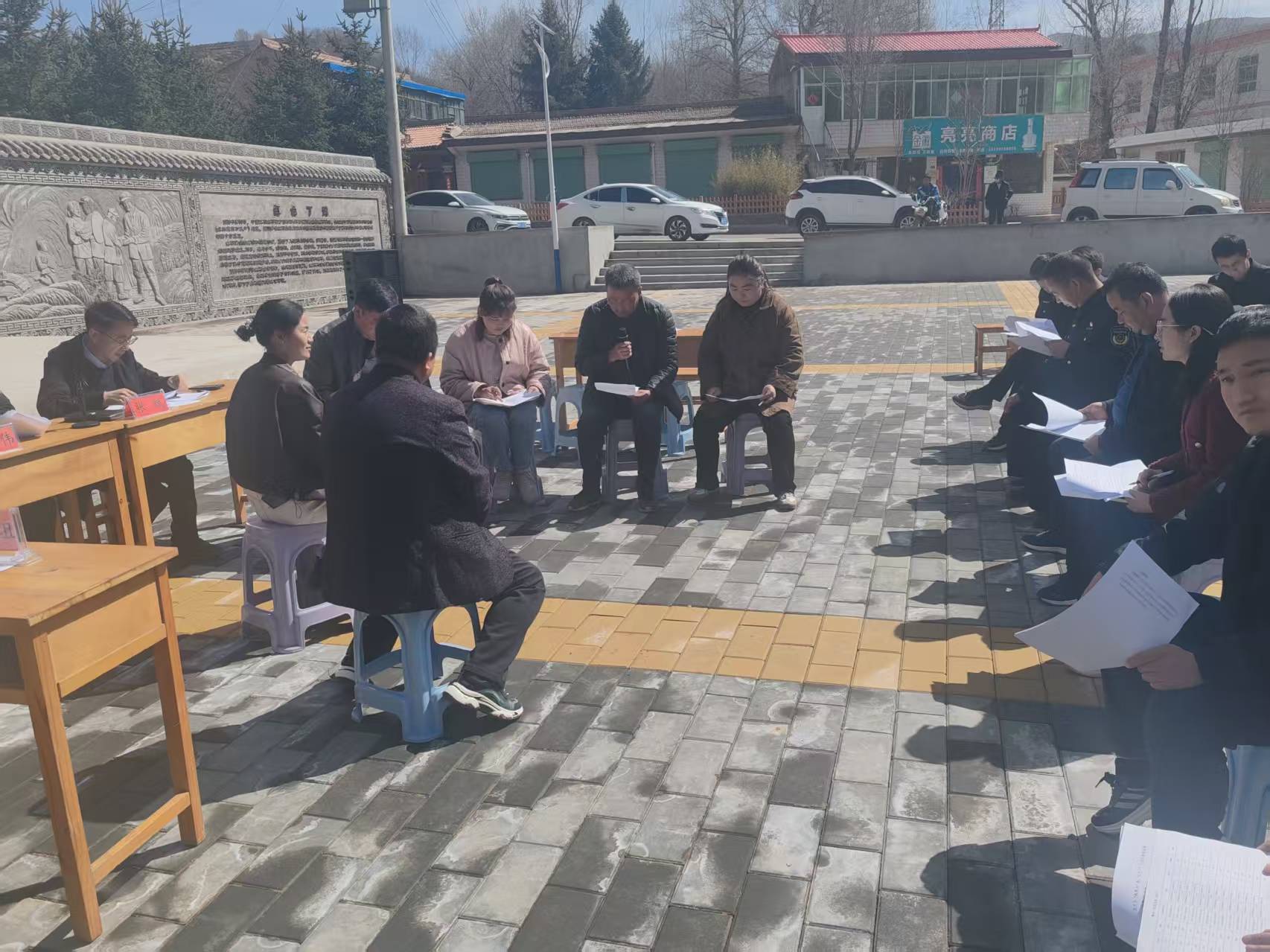4月1日,在丁滩村文化广场召开五户乡“板凳会”和“五个一”工作法现场推演会。